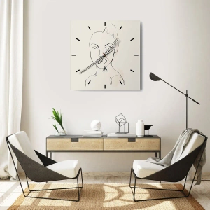 Ceas de perete - Ceas pe sticlă - Un portret minimalist al chipului unei femei - 30x30cm - Schiță de senzualitate - Decorațiune modernă pentru perete pentru living, bucătărie și dormitor ARTTOR