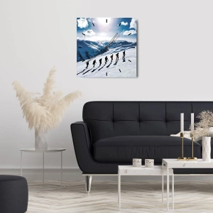Ceas de perete - Ceas pe sticlă - Un grup de alpiniști în munți înzăpeziți sub un cer senin - 30x30cm - Echipa câștigătoare - Decorațiune modernă pentru perete pentru living, bucătărie și dormitor ARTTOR