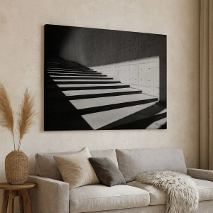 Pictura pe pânză cu dimensiunea de 70x50 cm în format orizontal „Frumusețea brută a modernismului” prezintă o compoziție minimalistă de scări în alb-negru. Jocul caracteristic de umbre și forme geometrice creează un efect vizual extraordinar care atrage atenția.