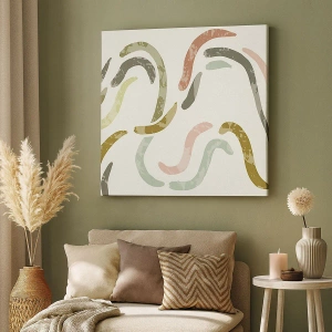 Tablou pe pânză Canvas - Arcuri abstracte în culori pastelate - 70x50cm - Dansul vesel al abstracției - Decorațiune modernă pentru perete pentru living și dormitor ARTTOR