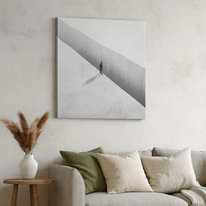 Tablou pe pânză Canvas - O figură solitară stă deasupra unei prăpastii adânci într-un decor monocromatic. - 70x50cm - Obiectiv clar - Decorațiune modernă pentru perete pentru living și dormitor ARTTOR