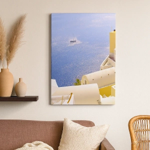 Peisajul dezvăluie farmecele Greciei, combinând frumusețea arhitecturii sale cu cerul albastru și marea calmă. Detaliile clădirilor, liniile moi și culorile pastelate conferă picturii o eleganță care se potrivește atât interioarelor moderne, cât și celor clasice. Este o decorațiune perfectă pentru un living, dormitor sau sufragerie, adăugând un caracter unic interiorului.