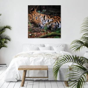 Tablou pe pânză Canvas - Un leopard întins la umbra copacilor - 70x50cm - Să ai încredere în mine - Decorațiune modernă pentru perete pentru living și dormitor ARTTOR