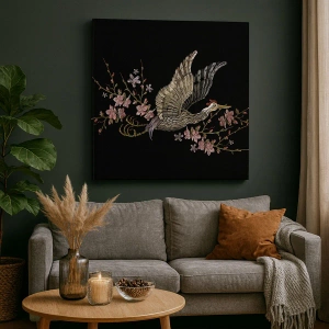 Tablou pe pânză - Pasăre exotică brodată - 30x30 cm