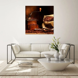 Compoziția din pictură aduce aminte de accesoriile tradiționale pentru cafea din trecut. Râșnița cu aspect clasic și sacul de iută naturală subliniază caracterul vintage. Detalii precum boabele de cafea împrăștiate adaugă dinamism și creează o atmosferă unică. Este combinația perfectă de simplitate și eleganță care va înviora orice spațiu.