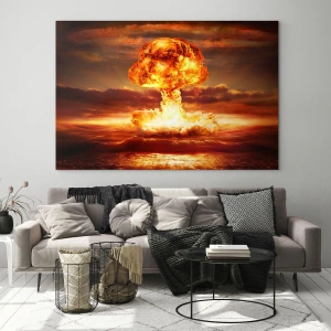 Tablou pe sticlă - O explozie de nor în formă de ciupercă în culorile intense ale unui apus de soare - 70x50cm - Și sfârșitul va veni - Decorațiune modernă pentru perete pentru living și dormitor ARTTOR