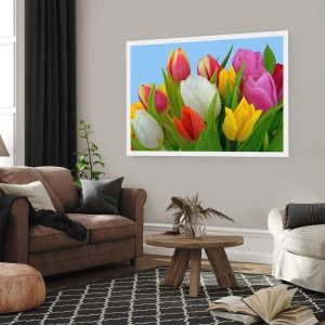 Poster - Un curcubeu floral în picături de rouă - 91x61 cm