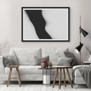 Poster în ramă neagră - Formă de undă minimalistă în negru și gri cu efect granulat - 50x70cm - Echilibru lichid - Decorațiune modernă pentru perete pentru living și dormitor ARTTOR