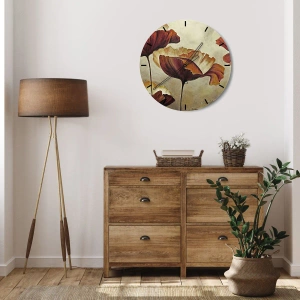Ceas de perete - Pajiști și câmpuri - Motiv floral artistic în tonuri calde de maro și bej