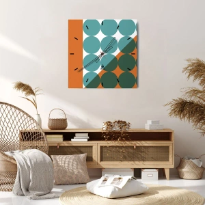 Ceas de perete - Ceas pe sticlă - Cercuri geometrice în nuanțe de verde și portocaliu - 30x30cm - Sus și pe diagonală - Decorațiune modernă pentru perete pentru living, bucătărie și dormitor ARTTOR