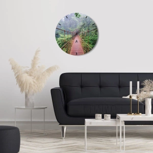 „Suspendat deasupra coroanelor” este un ceas de perete care ne transportă în inima unei aventuri tropicale. Motivul principal al graficii este un pod suspendat roșu, suspendat deasupra unei jungle luxuriante și verzi, cu o ceață ușoară plutind prin el. Compoziția încântă prin intensitatea culorilor sale și misterul peisajului, stârnind emoții și inspirând descoperirea de noi locuri.