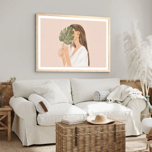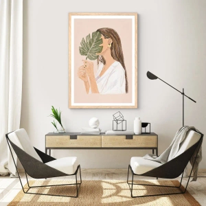 Poster în ramă de stejar deschis - Portret misterios cu un evantai - 50x40 cm