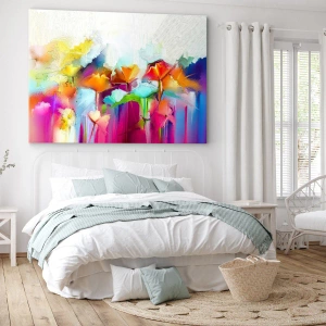 Tablou pe pânză Canvas - Flori colorate abstracte pe un fundal deschis - 70x50cm - Curcubeul înflorit - Decorațiune modernă pentru perete pentru living și dormitor ARTTOR