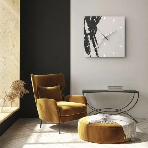 Ceas de perete - Ceas pe sticlă - Pensule negre expresive pe un fundal deschis - 30x30cm - Un impuls de neoprit - Decorațiune modernă pentru perete pentru living, bucătărie și dormitor ARTTOR