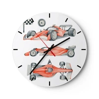 Ceas de perete - Ceas pe sticlă - Mașini de curse roșii și un steag în carouri pe un fundal alb - 30x30cm - Prindeți visul - Decorațiune modernă pentru perete pentru living, bucătărie și dormitor ARTTOR