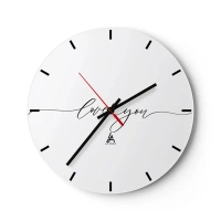 Ceas de perete - Ceas pe sticlă - Ceas alb minimalist cu inscripția „Te iubesc” - 30x30cm - Negru pe alb - Decorațiune modernă pentru perete pentru living, bucătărie și dormitor ARTTOR