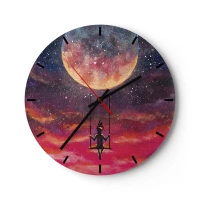 Ceas de perete - Ceas pe sticlă - O fată pe un leagăn suspendat sub lună - 30x30cm - Cu capul în nori - Decorațiune modernă pentru perete pentru living, bucătărie și dormitor ARTTOR