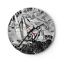 Ceas de perete - Ceas pe sticlă - Abstracție alb-negru cu modele geometrice complexe - 30x30cm - Doar un om aparent gri - Decorațiune modernă pentru perete pentru living, bucătărie și dormitor ARTTOR