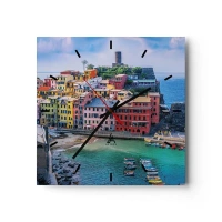 Ceas de perete - Ceas pe sticlă - Orașul mediteraneean magic - 30x30 cm