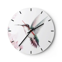 Ceas de perete - Ceas pe sticlă - O pictură delicată în acuarelă a unei colibri în zbor - 30x30cm - Oprit în mișcare - Decorațiune modernă pentru perete pentru living, bucătărie și dormitor ARTTOR