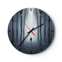 Ceas de perete - Ceas pe sticlă - O pădure întunecată în ceață cu o figură misterioasă - 30x30cm - Și totul este simplu și clar - Decorațiune modernă pentru perete pentru living, bucătărie și dormitor ARTTOR