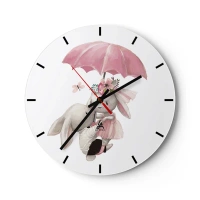 Ceas de perete - Ceas pe sticlă - Doi iepuri sub o umbrelă roz cu decorațiuni florale - 30x30cm - Pur și simplu dragoste - Decorațiune modernă pentru perete pentru living, bucătărie și dormitor ARTTOR