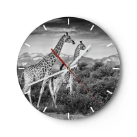 Ceas de perete - Ceas pe sticlă - fotografie alb-negru a două girafe în savană. - 30x30cm - Clasele superioare din Africa - Decorațiune modernă pentru perete pentru living, bucătărie și dormitor ARTTOR
