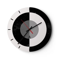 Ceas de perete - Ceas pe sticlă - Model abstract alb-negru cu cercuri concentrice - 30x30cm - Armonie în alb și negru - Decorațiune modernă pentru perete pentru living, bucătărie și dormitor ARTTOR