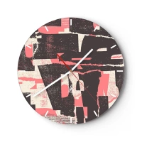 Ceas de perete - Ceas pe sticlă - Model abstract care seamănă cu amprente digitale în roz - 30x30cm - Într-un labirint de coral - Decorațiune modernă pentru perete pentru living, bucătărie și dormitor ARTTOR