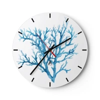 Ceas de perete - Ceas pe sticlă - Ilustrație a coralului albastru pe fundal alb - 30x30cm - Filigranul marin - Decorațiune modernă pentru perete pentru living, bucătărie și dormitor ARTTOR