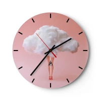 Ceas de perete - Ceas pe sticlă - Picioare în tocuri roșii înalte și un nor în loc de cap - 30x30cm - Dulce promisiune - Decorațiune modernă pentru perete pentru living, bucătărie și dormitor ARTTOR