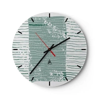 Ceas de perete - Ceas pe sticlă - O compoziție grafică cu linii orizontale în nuanțe de verde marin. - 30x30cm - Abstracție marină - Decorațiune modernă pentru perete pentru living, bucătărie și dormitor ARTTOR