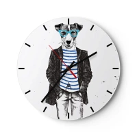 Ceas de perete - Ceas pe sticlă - Un câine cu ochelari și o cămașă de marinar - 30x30cm - Câinele în dungi - Decorațiune modernă pentru perete pentru living, bucătărie și dormitor ARTTOR