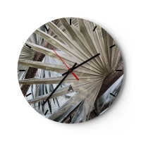 Ceas de perete - Ceas pe sticlă - Prim-plan al frunzelor de palmier evantai - 30x30cm - Evantaie din tropice - Decorațiune modernă pentru perete pentru living, bucătărie și dormitor ARTTOR