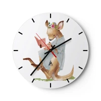 Ceas de perete - Ceas pe sticlă - O mamă cangur citind o carte cu puiul ei în poală - 30x30cm - Citește-mi, mamă - Decorațiune modernă pentru perete pentru living, bucătărie și dormitor ARTTOR