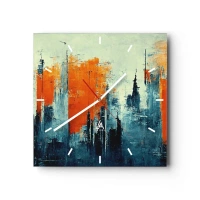 Ceas de perete - Ceas pe sticlă - Compoziție modernă cu bliț - 30x30 cm