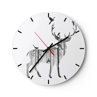 Ceas de perete - Ceas pe sticlă - Silueta unui cerb umplută cu un motiv de pădure și pasăre - 30x30cm - Spiritul bun al pădurii - Decorațiune modernă pentru perete pentru living, bucătărie și dormitor ARTTOR