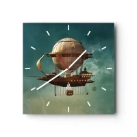 Ceas de perete - Ceas pe sticlă - Jules Verne vă transmite salutări - 30x30 cm