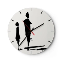 Ceas de perete - Ceas pe sticlă - Siluete negre a două figuri pe fundal alb, într-un stil schițat. - 30x30cm - Cu siguranță împreună? - Decorațiune modernă pentru perete pentru living, bucătărie și dormitor ARTTOR