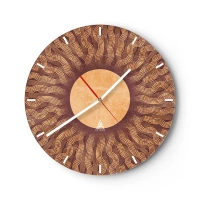 Ceas de perete - Ceas pe sticlă - Cadran solar cu model radiant în culori calde - 30x30cm - Icoana soarelui - Decorațiune modernă pentru perete pentru living, bucătărie și dormitor ARTTOR