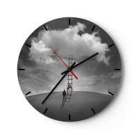 Ceas de perete - Ceas pe sticlă - Un bărbat urcă o scară către un nor pe cer - 30x30cm - Orice este posibil - Decorațiune modernă pentru perete pentru living, bucătărie și dormitor ARTTOR