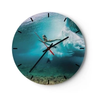 Ceas de perete - Ceas pe sticlă - Un surfer călărește un val în apă cristalină - 30x30cm - Lumea subacvatică - Decorațiune modernă pentru perete pentru living, bucătărie și dormitor ARTTOR