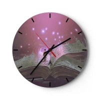 Ceas de perete - Ceas pe sticlă - O carte deschisă cu o strălucire roz magică - 30x30cm - O invitație către o altă lume - citiți! - Decorațiune modernă pentru perete pentru living, bucătărie și dormitor ARTTOR
