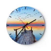 Ceas de perete - Ceas pe sticlă - Un dig pe lac în razele soarelui care apune - 30x30cm - E timpul să ne întoarcem... - Decorațiune modernă pentru perete pentru living, bucătărie și dormitor ARTTOR