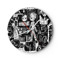 Ceas de perete - Ceas pe sticlă - Un cadran de ceas cu motiv graffiti în culori strălucitoare - 30x30cm - Picturi murale, picturi murale... - Decorațiune modernă pentru perete pentru living, bucătărie și dormitor ARTTOR