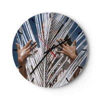 Ceas de perete - Ceas pe sticlă - Mâini decorate cu inele în spatele frunzelor albe de palmier - 30x30cm - Prietena șamanului? - Decorațiune modernă pentru perete pentru living, bucătărie și dormitor ARTTOR