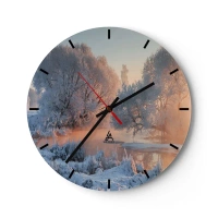 Ceas de perete - Ceas pe sticlă - Peisaj de iarnă cu copaci înghețați în zori - 30x30cm - Totul strălucește în cristal însorit - Decorațiune modernă pentru perete pentru living, bucătărie și dormitor ARTTOR