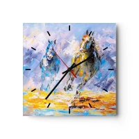 Ceas de perete - Ceas pe sticlă - Galopând prin strălucire - 30x30 cm