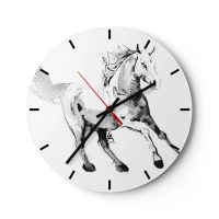 Ceas de perete - Ceas pe sticlă - Schiță a unui cal în galop pe fundal alb - 30x30cm - Suflet neîmblânzit - Decorațiune modernă pentru perete pentru living, bucătărie și dormitor ARTTOR
