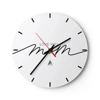 Ceas de perete - Ceas pe sticlă - Inscripția „Te iubesc, mamă” pe fundal alb, într-un stil elegant - 30x30cm - Mare emoție - Decorațiune modernă pentru perete pentru living, bucătărie și dormitor ARTTOR